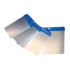 Set de espátulas de 60, 80, 100 y 120 mm en PVC. Calidad profesional. Ideal para enlucir y emplastecer.